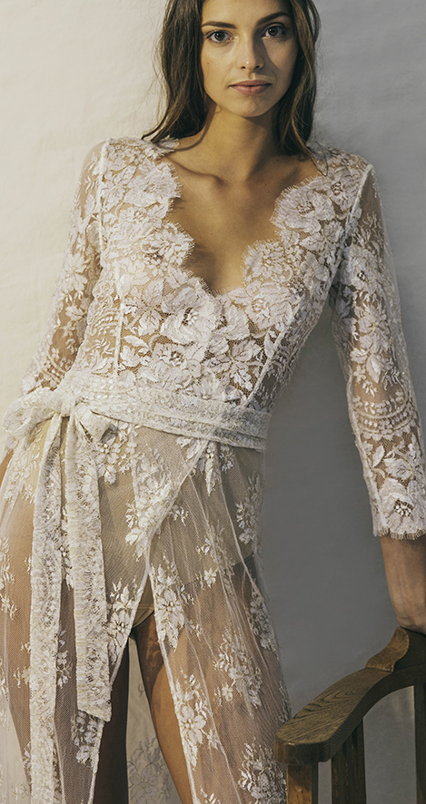 La résille et la dentelle caressent la peau, la nuit est magique... Par un jeu de transparence, de fluidité, c'est l'essence même de la matière noble qui s'inscrit dans l'inspiration nocturne, composée de nuisettes et de kimonos.